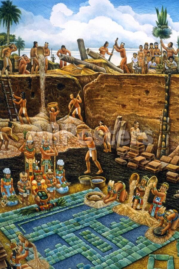Olmec Indians Bury a Newly Created Tile Mosaic of Serpentine BlocksFelipe Davalos